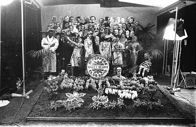 «Sgt. Pepper’s Lonely Hearts Club Band» es el octavo álbum de estudio de los Beatles. Los artistas pop Peter Blake y Jann Haworth diseñaron la icónica cubierta del álbum. La portada fue dirigida artisticamente por Robert Fraser y fotografiada por Michael Cooper. La sesión fotográfica se realizó el 30 de marzo de 1967, durante 3 horas en la noche. Cooper también produjo un boceto en tinta en el que Blake y Haworth basaron el diseño. El costo final para la portada fue de casi £ 3000 (equivalente a £ 56000 en 2020), una suma extravagante en es momento en que las portadas costaban alrededor de £ 50 (equivalente a £ 900 en 2020).
