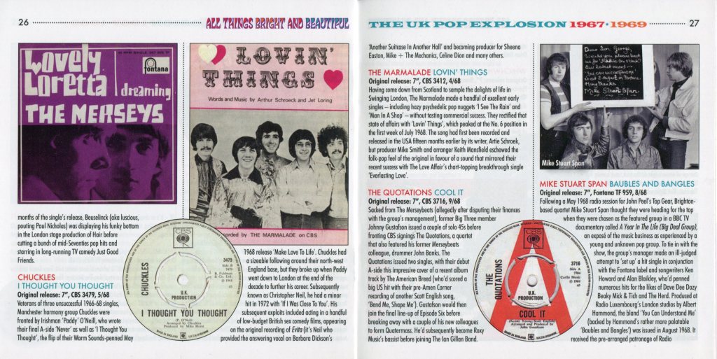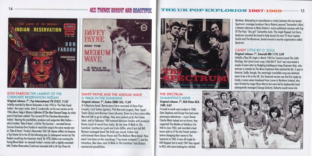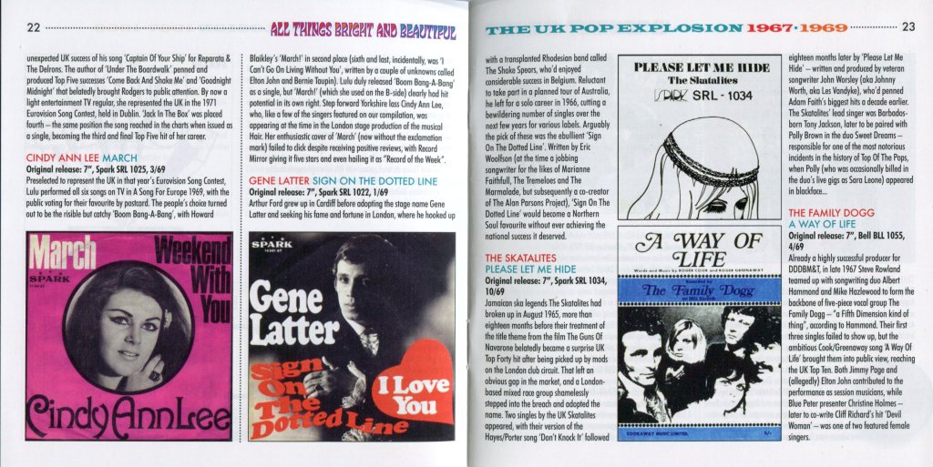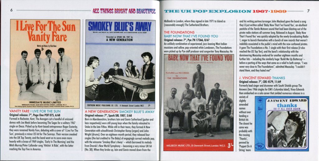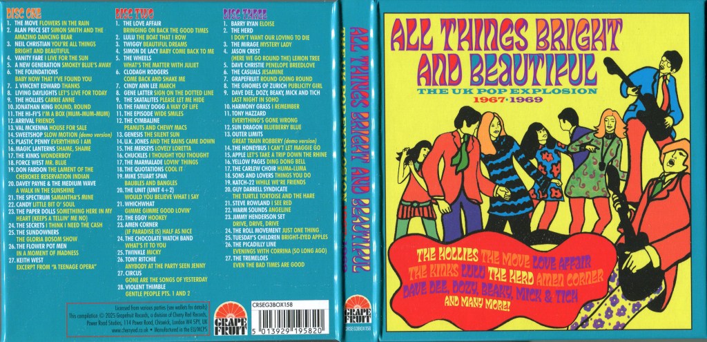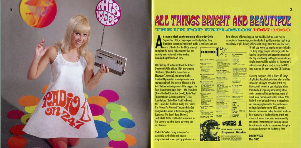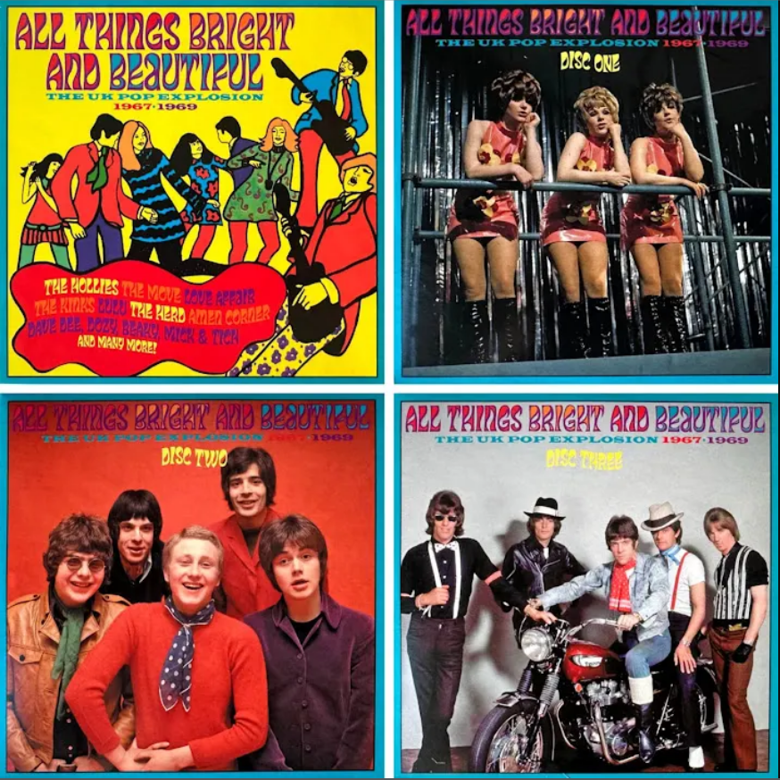 «All Things Bright and Beautiful: The UK Pop Explosion 1967–1969» es una recopilación de 3 CD que captura la vibrante escena pop británica durante los años tras el lanzamiento de BBC Radio 1 en 1967.