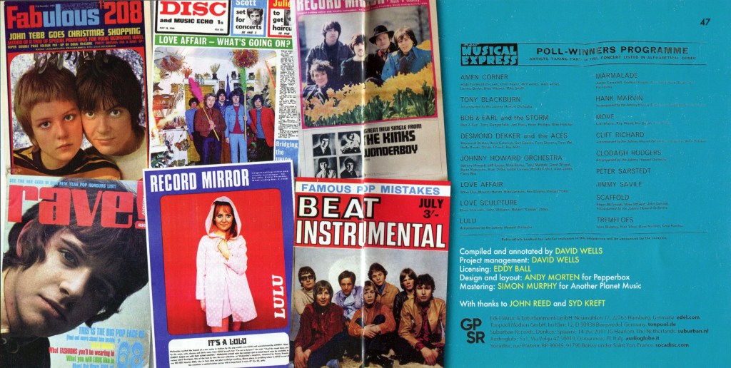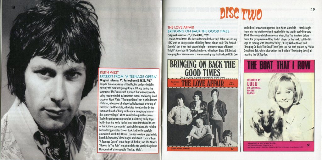 La recopilación incluye 55 temas, que combinan grandes éxitos con sencillos poco comunes y olvidados que se emitieron en radio pero nunca entraron en las listas de éxitos. Incluye actuaciones de artistas reconocidos como The Move, The Kinks, The Hollies, The Foundations, Lulu y Amen Corner, junto con artistas menos conocidos o de un solo éxito como The Eggy, The Violent Thimble y The Gnomes of Zurich.