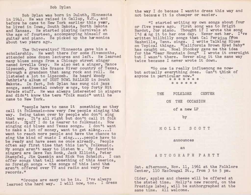 El 26 de septiembre, Dylan empezó dos semanas de actuaciones en el Gerde’s Folk City. El 29 de septiembre, una crítica musical excepcionalmente favorable del desempeño de Dylan apareció en el New York Times. El mismo día, Dylan tocó la harmónica en la sesión de grabación de Hester en los estudios de Manhattan de Columbia. Después de la sesión, Hammond le llevó a Dylan a sus oficinas y le presentó el contrato de cinco años estándar de Columbia para artistas previamente no registrados, y Dylan firmó de inmediato.