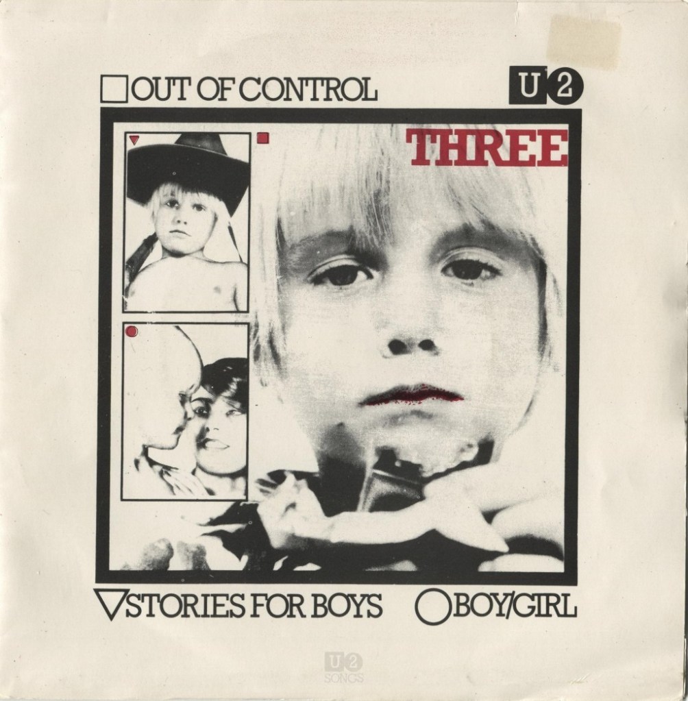 Three comprende tres canciones grabadas en Windmill Lane Studios en agosto de 1979, con el representante de A&R del sello, Chas de Whalley, como productor. «Out of Control» aparece en la cara A, con «Stories for Boys» y «Boy/Girl» en la cara B, resultado de una encuesta de oyentes en el programa de radio de Dave Fanning; el lanzamiento se conoce de diversas formas como sencillo y EP. Fue el primer éxito en las listas de éxitos del grupo, vendiendo las 1000 copias de su vinilo de edición limitada de 12 pulgadas casi de inmediato. El lanzamiento en vinilo de 7 pulgadas de Three alcanzó el puesto 19 en la lista de singles irlandeses.