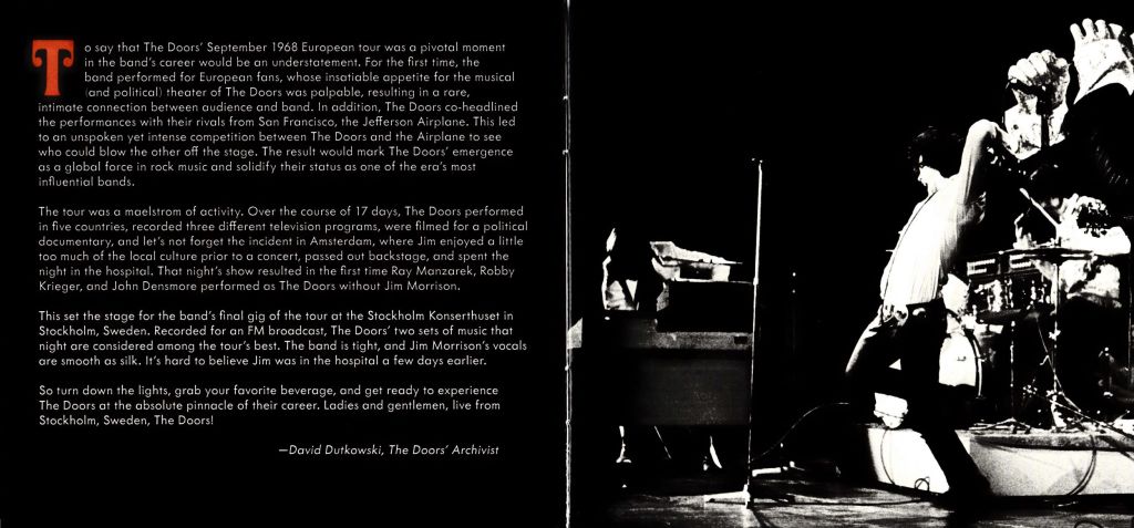 Esos dos conciertos legendarios en Suecia se lanzaron para el Record Store Day de 2024, la caja está en formato de 3 LP o 2 CD. Ambos espectáculos han sido mezclados y masterizados a partir de las cintas originales de cuatro pistas por Bruce Botnick, el ingeniero de toda la vida de la banda, creando la versión definitiva de estas actuaciones de Jim Morrison, Ray Manzarek, Robby Krieger y John Densmore.