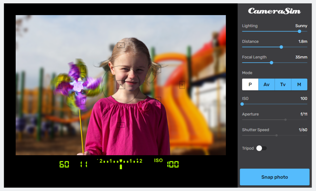 Para quienes estamos aprendiendo las ideas básicas de la fotografía en modo manual (es decir, modificando manualmente la apertura de diafragma, la velocidad de exposición y la sensibilidad ISO), la manera usual de practicar consiste en tomar la cámara y hacer decenas de pruebas, comparando los resultados obtenidos.