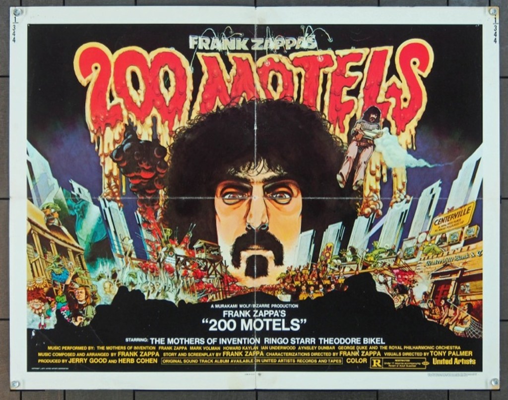 «200 Motels» es una película musical surrealista escrita y dirigida por Frank Zappa y Tony Palmer, y con música de Zappa. Una coproducción internacional de Estados Unidos y Reino Unido, la película está protagonizada por Mothers of Invention, Theodore Bikel y Ringo Starr. Se estrenó el 10 de noviembre de 1971. La banda sonora de 200 Motels fue lanzada por United Artists Records el 4 de octubre de 1971 y presenta una combinación de canciones de rock y jazz, música orquestal y diálogos hablados cómicos.