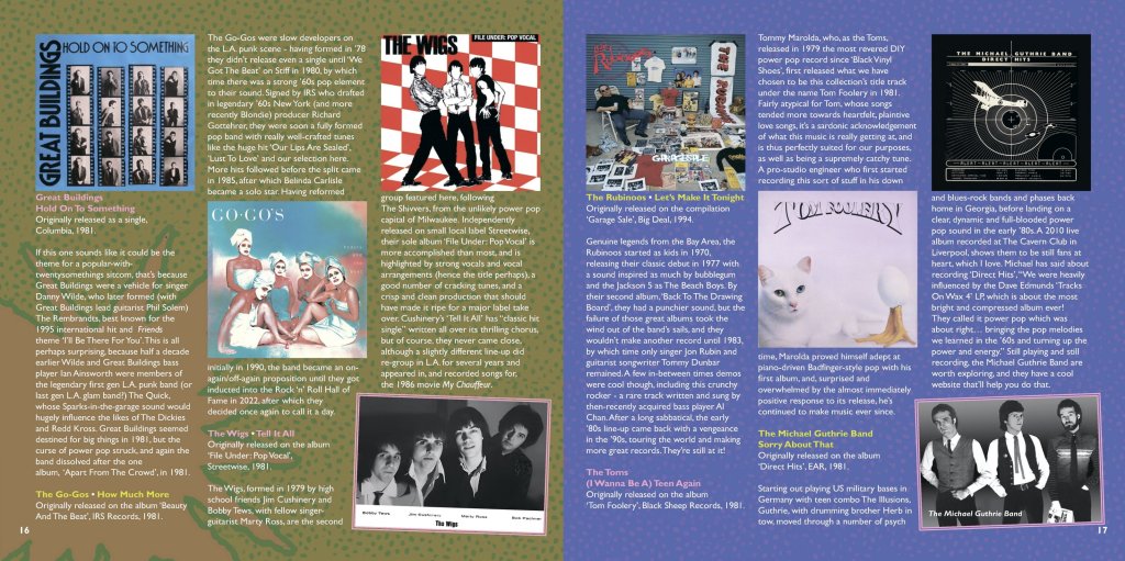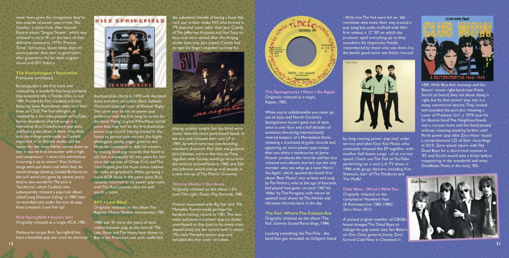 Repleto de clásicos y diamantes en bruto olvidados durante mucho tiempo, y en un momento en que nuevas bandas como The Lemon Twigs exploran en el power pop de los 80 en busca de material e inspiración, y algunos artistas clave como Redd Kross y The Bangles son celebrados en libros y películas, «I Wanna Be A Teen Again» es un oportuno análisis de esta época llena de acción y sus emocionantes sonidos.